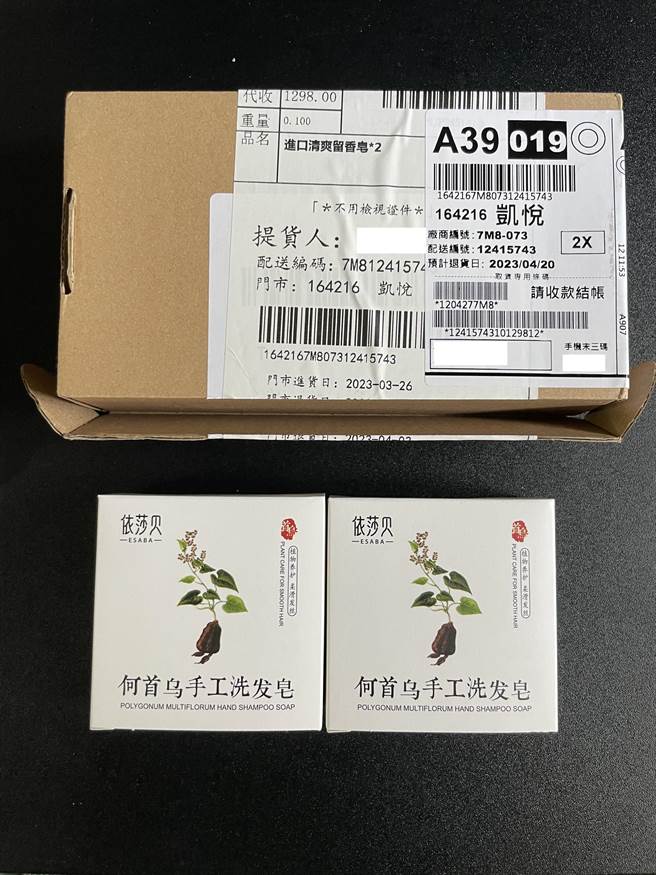 王女士在仿冒網站訂購民生堂臻白祛斑霜收到詐騙包裹,付1298元收到洗髮皂: